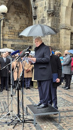 Tady ale nejsme na politickém semináři. Proto už to dále nebudu prodlužovat. Svým vystoupením jsem chtěl přispět k tomu, abychom si i v den našeho státního svátku souvislosti tohoto typu uvědomovali a abychom o nich uvažovali. Abychom jen nevyvěsili prapory a nedali si za klopu trikolóru. Už řadu let hrozí, že se právě v toto oslavy 28. října proměňují. A že se – místo toho, aby byly oslavou toho, co se stalo v říjnu 1918 – proměňují v předávání státních vyznamenání. To nedopusťme.