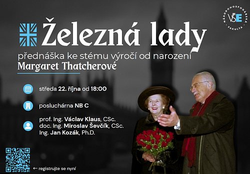 Ve středu 22. října od 18:00 hodin vystoupí Václav Klaus na půdě Národohospodářské fakulty VŠE s projevem u příležitosti 100. výročí narození Margaret Thatcherové.